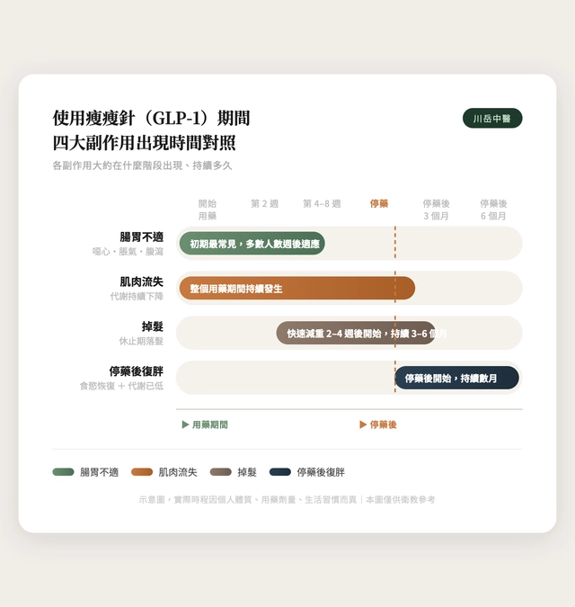 瘦瘦針的效果建立在「持續使用」的前提上。一旦停藥,食慾恢復正常,但如果這段時間肌肉流失了、代謝也降了,身體的燃燒效率已經不如從前。